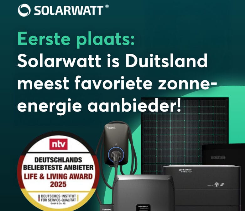 juni 17, 2025Tiel – Het Duitse zonne-energiemerk Solarwatt is voor het tweede jaar op rij bekroond met de prestigieuze Live & Living Award 2025, in de categorie zonnetechnologie. Daarmee bevestigt Solarwatt zijn status als meest gewaardeerde merk onder consumenten op het gebied van zonne-energie én thuisbatterijen.